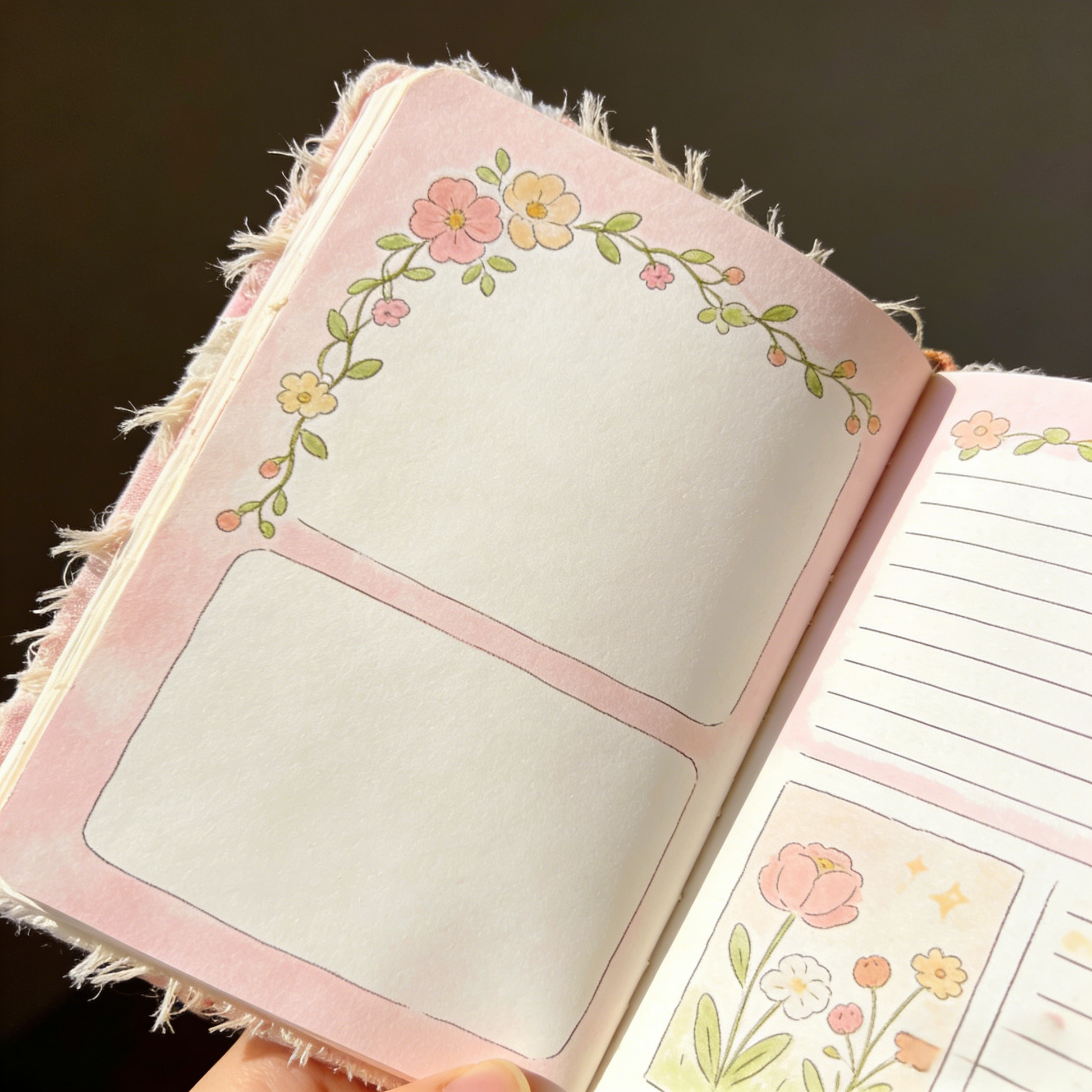 Inner Pages: Decorative illustrated pages with open writing areas